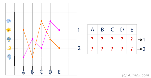 Даны 2 графика и . Рассмотрев их, найди 3-ий график.