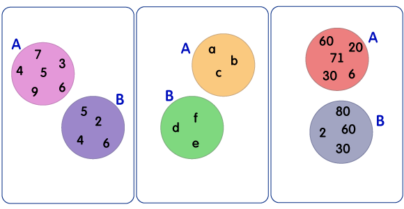 Выбери вариант, где множества при пересечении образуют пустое множество.