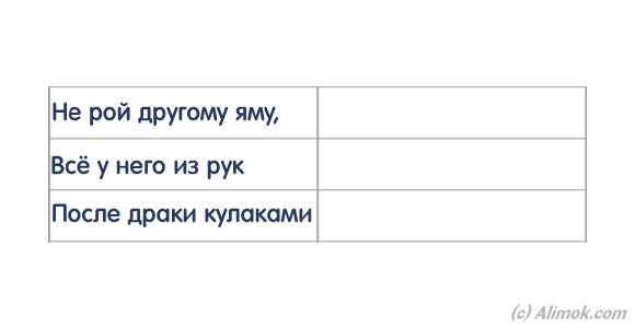Дополни пословицы и поговорки, перетащив соответствующие фразы на свои места.
