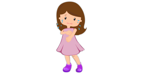 The girl is crying because _____ arm is hurting.
