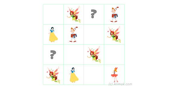 Какие герои должны стоять на месте вопросительных знаков? Перетащи их.